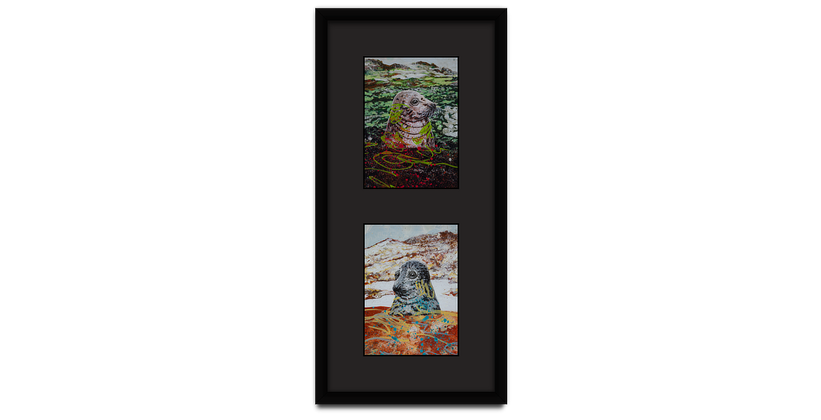 Þessi Staður Er Galdur "This Place Is Magic" This piece was inspired by my trip to Iceland in 2019 with Light Grey Art Lab-team Grey Seal, and produced for the Together Residency Exhibition in 2020. Framed diptych, gouache on paper. 10"x20" I painted two 5″ x 7″ grey seal portraits in gouache, setting them against… Read More